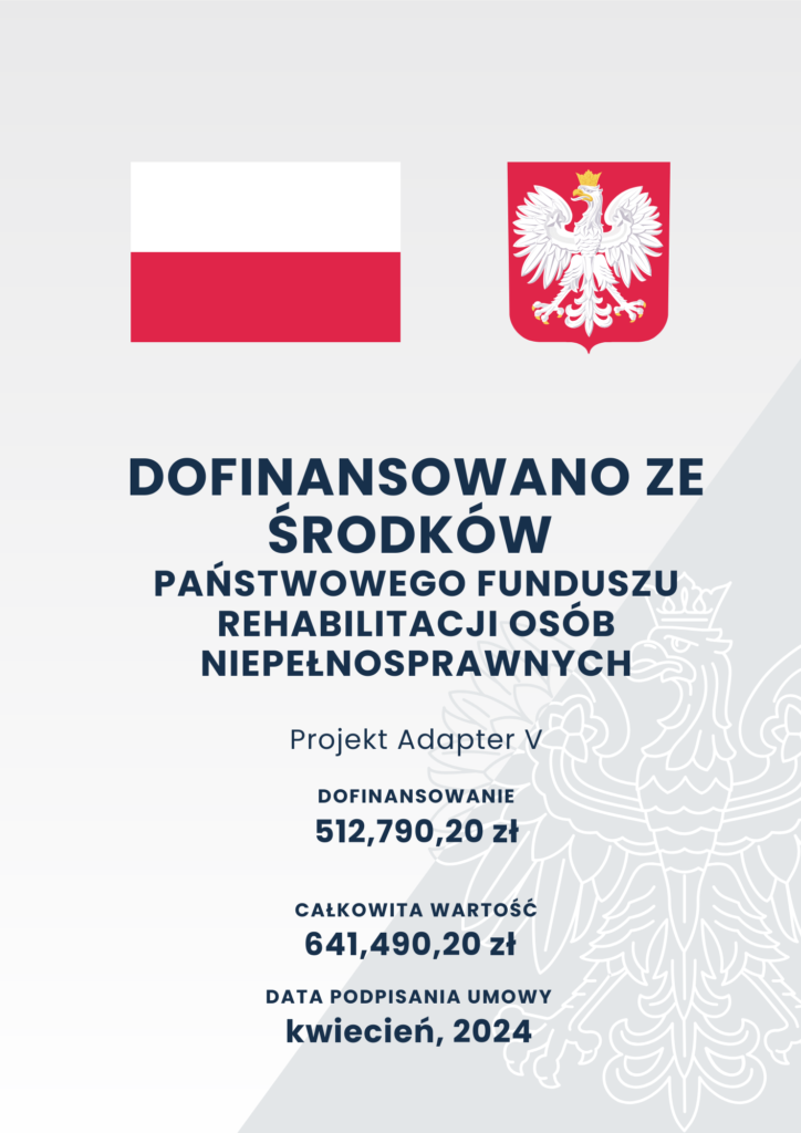 Projekt ADAPTER jest dofinansowany przez Państwowy Fundusz Rehabilitacji Osób Niepełnosprawnych i środki Ministra Kultury i Dziedzictwa Narodowego pochodzących z Funduszu Promocji Kultury – państwowego funduszu celowego.