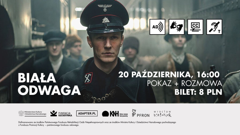 Fundacja Katarynka zaprasza na pokaz filmu „Biała odwaga” w reżyserii Marcina Koszałki z audiodeskrypcją, napisami i pętlą indukcyjną w Kinie Nowe Horyzonty. Przed pokazem odbędzie się na rozmowa z Grzegorzem Straucholdem, wrocławskim historykiem. Spotkanie będzie tłumaczone na PJM.