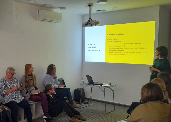 Podczas spotkania Alicja Regiewicz w przystępny sposób wytłumaczyła podstawowe pojęcia związane z kryzysami psychicznymi, przybliżając m.in. pojęcia z klasyfikacji ICD-10. Dodatkowo, w ramach warsztatów, uczestnicy wzięli udział w ćwiczeniu „Zauważ, Zapytaj, Zaakceptuj, Zareaguj”. Ćwiczenie to miało na celu naukę dobrych praktyk, kiedy w naszej instytucji/organizacji spotkamy osobę w kryzysie zdrowia psychicznego.