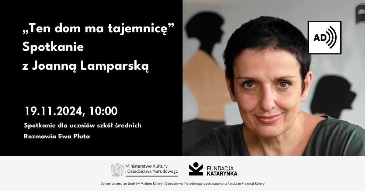 Fundacja Katarynka zaprasza uczniów szkół średnich na spotkanie autorskie z Joanną Lamparską – znaną pisarką, dziennikarką, popularyzatorką historii i poszukiwaczką tajemnic Dolnego Śląska. Autorka podzieli się niezwykłymi historiami opisanymi w swojej książce „Ten dom ma tajemnicę”, pełnej opowieści o zamkach, dworach i miejscach naznaczonych zagadkami.